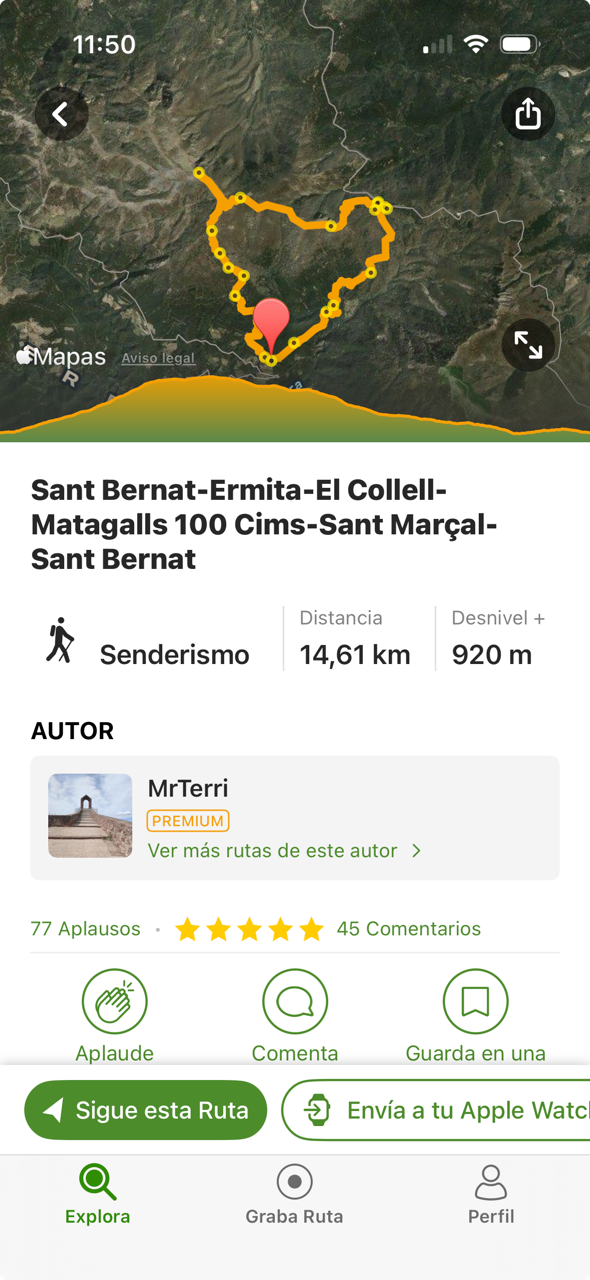 - Ver toda la información de la ruta: Si quieres saber más sobre la ruta, pulsa sobre el recuadro de la previsualización.